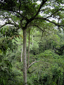 Abseits vom Pfad ist es ein kaum durchdringbares, grünes Dickicht. An manchen Stellen dringt kaum Licht bis unten durch. |