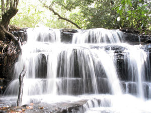 Auch jetzt in der Trockenzeit donnert noch viel Wasser die 80m hohe Klippe hinunter. Unten ist ein grosser Pool. Der Wind und die Gischt sind zusammen die perfekte Klimaanlage. |