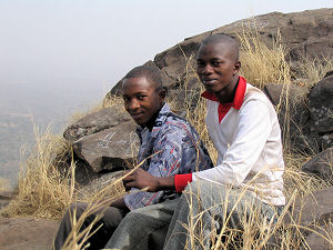 Den nächsten Tag bleiben wir noch hier und planen unsere Wanderung über die Grenze über die Grenze in den Senegal. Der sehr rührige Monsieur Souaré ist Chef des kleinen Tourist office, er besorgt uns zwei Guides aus seinem Dorf. Die nächste Nacht verbringen wir in seinem campement am Fusse der Dame de Mali. |